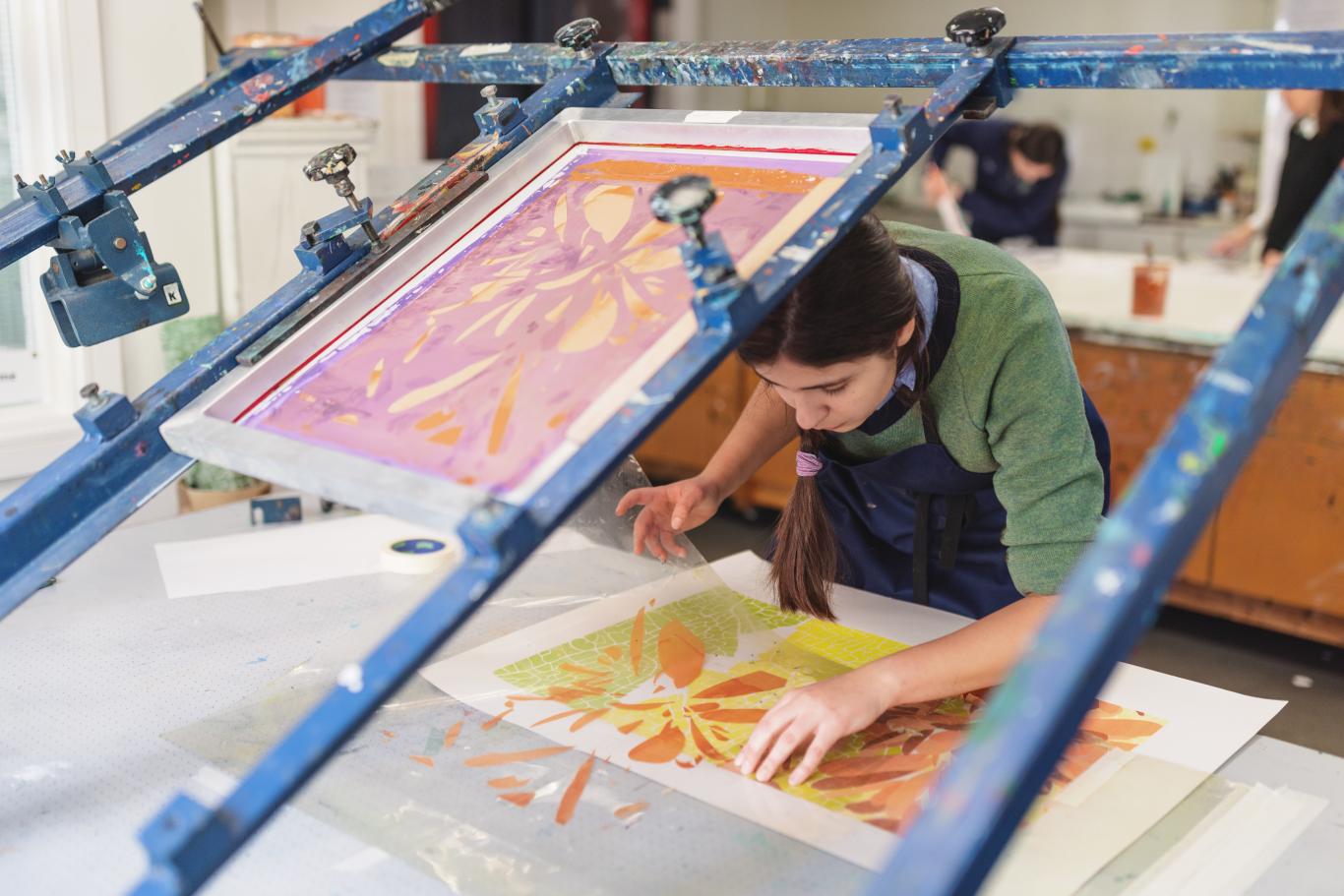 This thriving department in the Fauconberg Wing has dedicated studio spaces, a large printmaking studio, textiles equipment, art library and traditional photography darkroom.